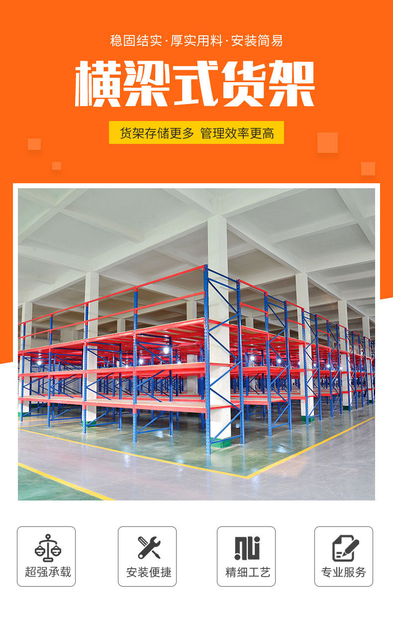 • 提高仓库存储高度和空间利用率:横梁货架能有效提高仓库存储高度,提高仓库空间利用率。