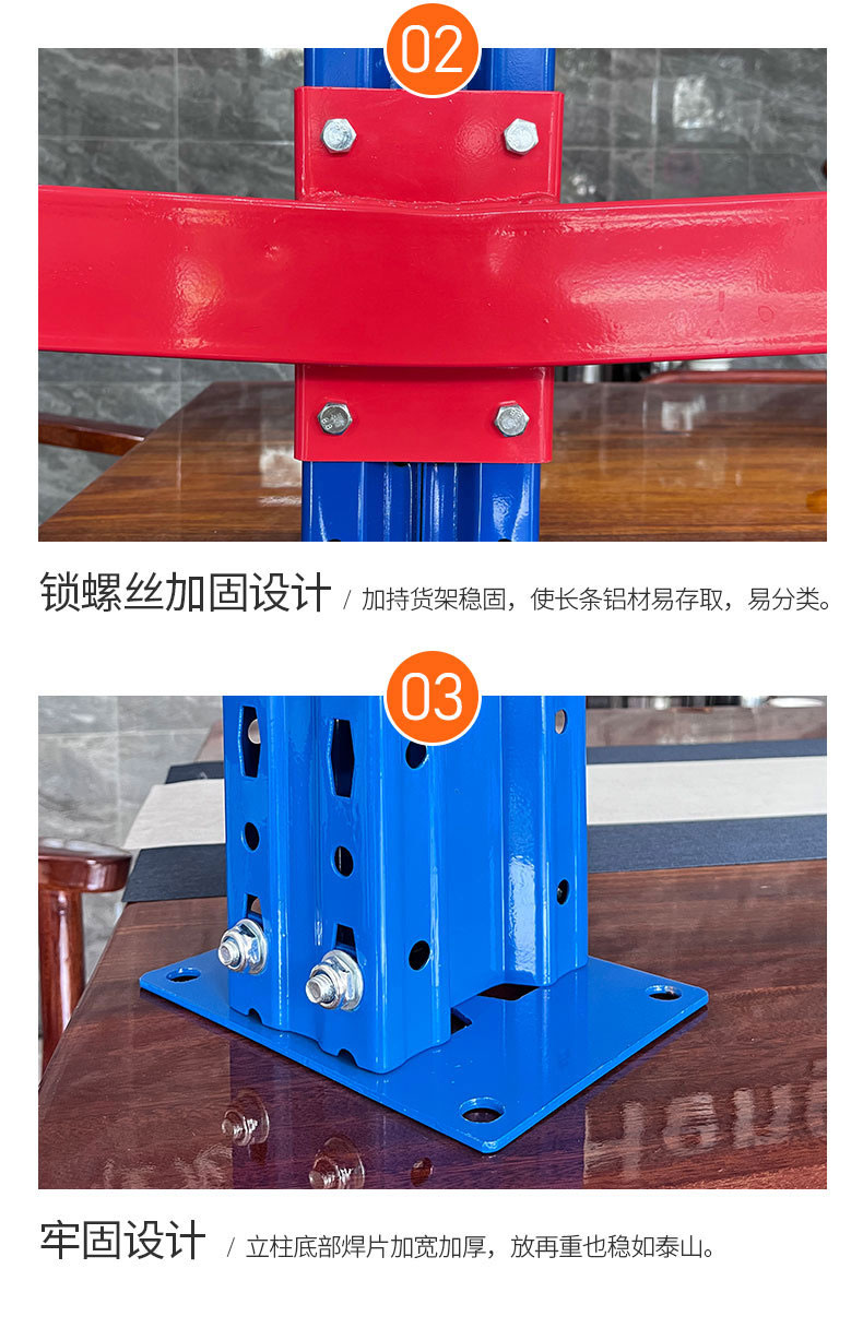 • 结构简单、安全可靠:横梁货架的柱片由立柱、横撑、斜撑以螺栓连接而成,这种结构方式不仅便于运输搬运,而且可以根据货物高度调整货架每层空间高度,满足不同货物高度的存放要求。横梁与立柱之间采用安全销固定,增加了货架的稳定性和安全性。